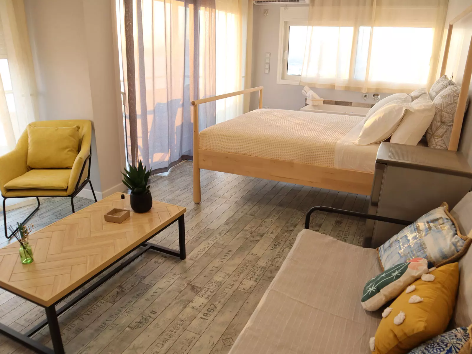 Διαμονή King sized κρεβάτι, μαξιλάρια, παντόφλες, κλινοσκεπάσματα και πετσέτες της κορυφαίας ελληνικής εταιρείας Cocomat.