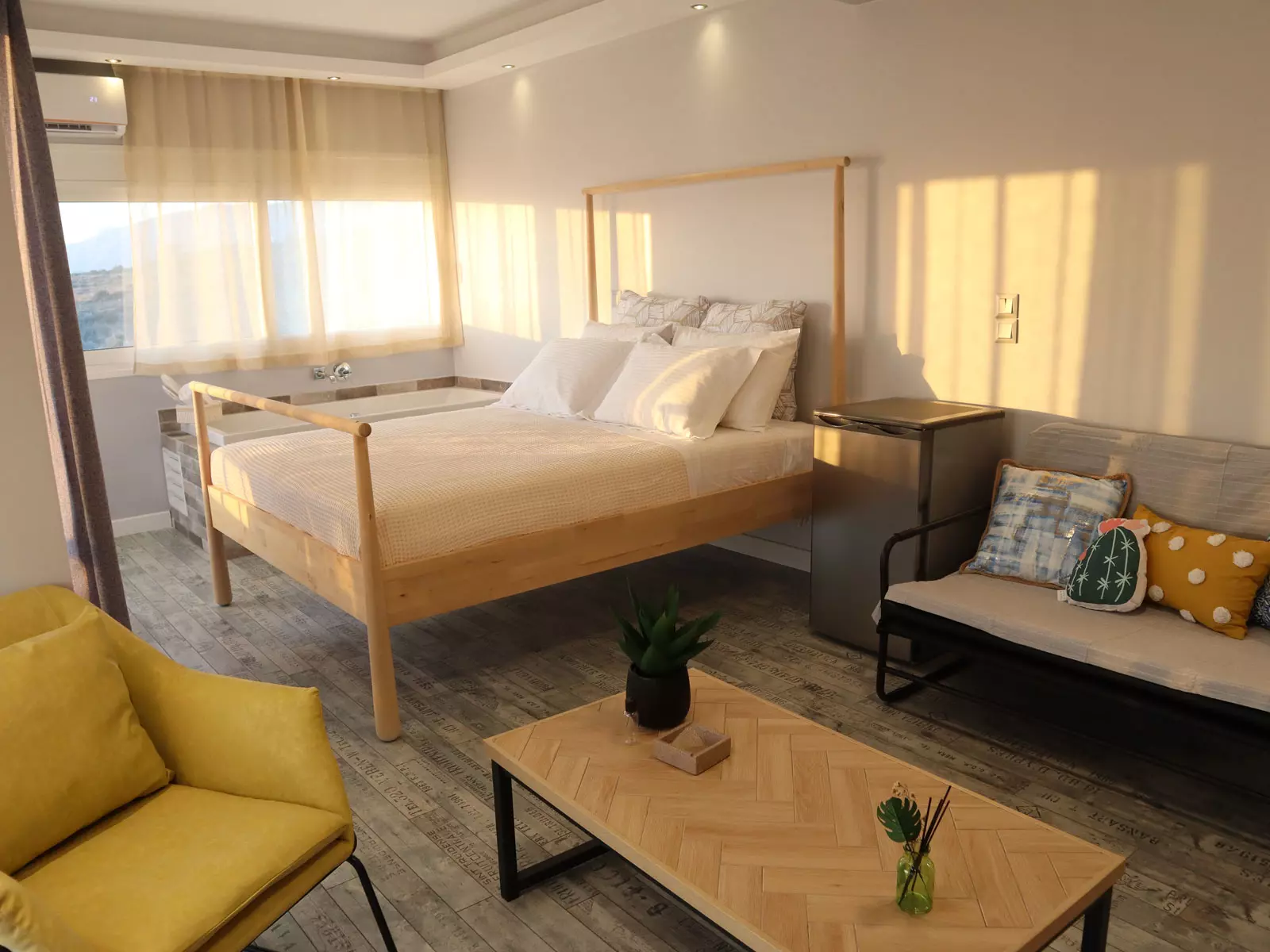 Μοντέρνα και άκρως πολυτελής, η σουίτα COS προσφέρει στους επισκέτες της μια μπανιέρα τζακούζι τοποθετημένη μοναδικά μέσα στο χώρο.
