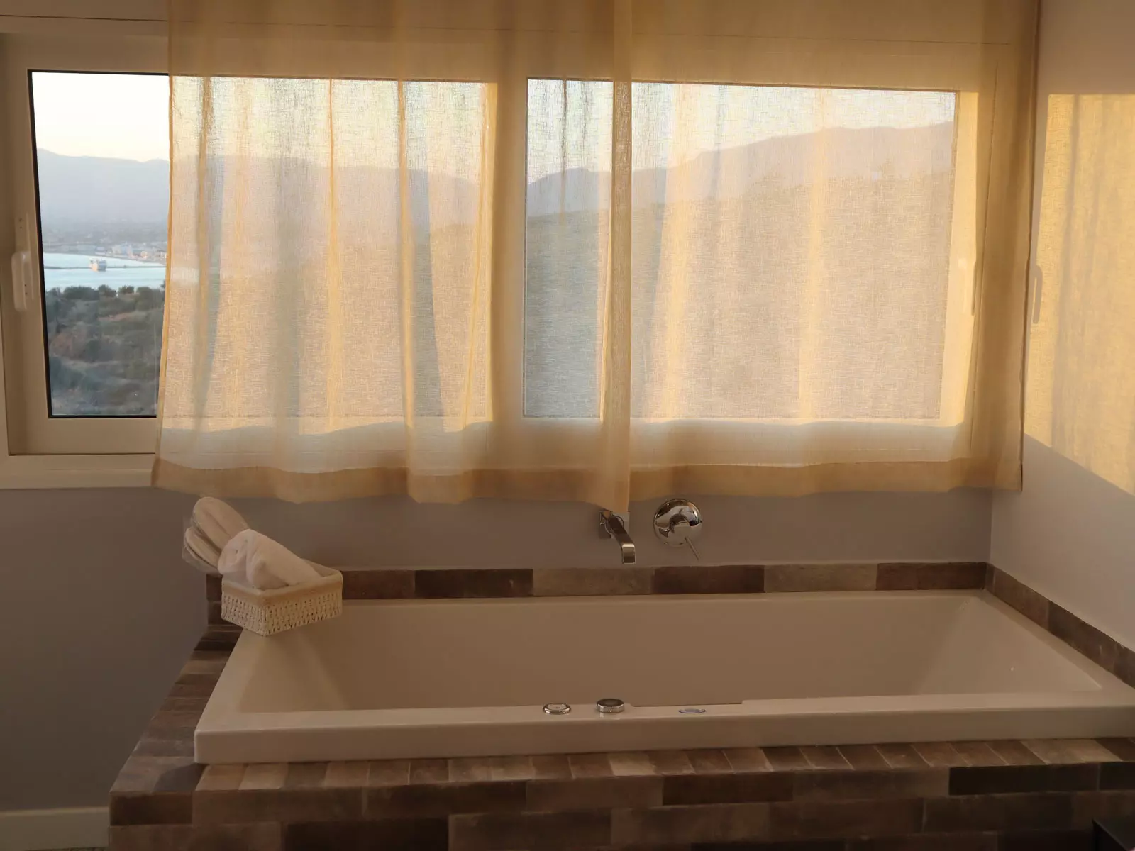 Τζακούζι Μπανιέρα τζακούζι με θέα στο απέραντο γαλάζιο.