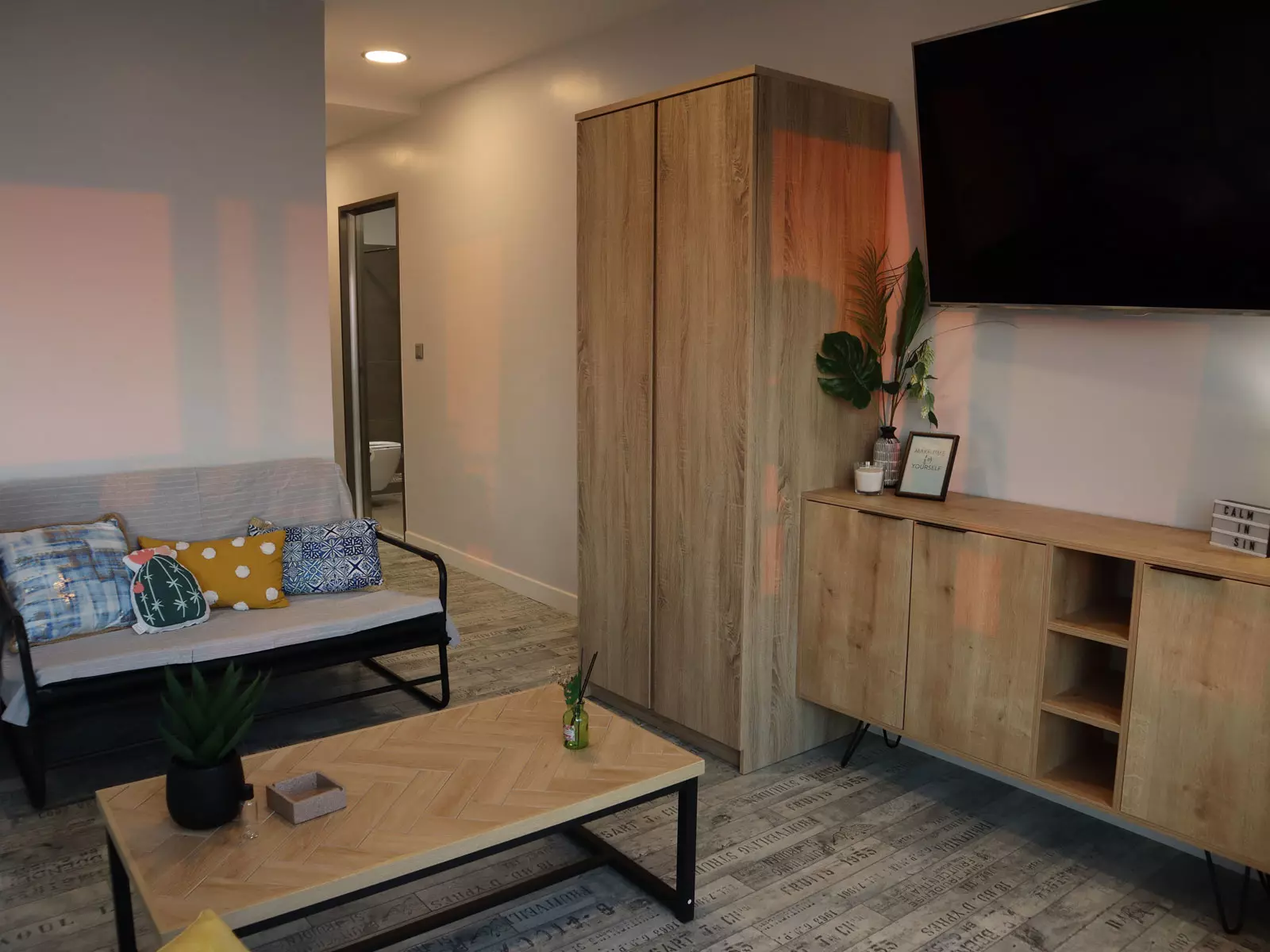 Διαθέτει ευρύχωρο μπάνιο με ντουζιέρα, πιστολάκι για τα μαλλιά, ψυγειάκι, πιάτα και μαχαιροπίρουνα, τοστιέρα, ηλεκτρικό μπρίκι.