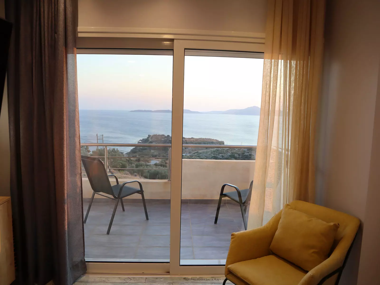 Βεράντα Ιδιωτική βεράντα με εντυπωσιακή θέα στο Λακωνικό κόλπο, την Ελαφόνησο, τα Κύθηρα και τη Νεάπολη.